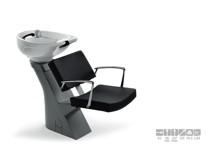 Мойка с креслом, на прочном каркасе из металла декорированном пластиком серого цвета. Мойка комплектуется глубокой керамической раковиной белого цвета с регулировкой угла наклона, комплект смесителя с хромированной лейкой душа. Мягкие элементы кресла обтянуты искусственной кожей высшего качества, подлокотники изготовлены из пластика серого цвета. Возможна комплектация с черной раковиной.