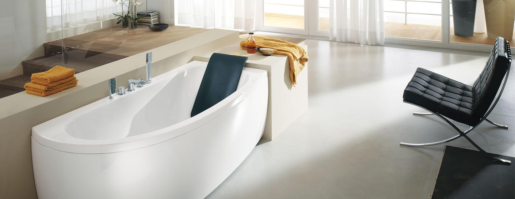 Ванна с лицевой и боковой панелью, форсунки Hydrosonic + гидромассажные форсунки (8 + 8), панель управления + пульт управления, цифровая регулировка подачи воздуха и воды, пульсирующий массаж, автоматическая дезинфекция, радио, часы, система Hydro Clean System, светильник (хромированная отделка), нагреватель, аэромассажные форсунки (16). 6 вариантов комплектации от 61598 рублей. 180 x 80/90 — выс. 56,5 Объем воды макс. 235 л