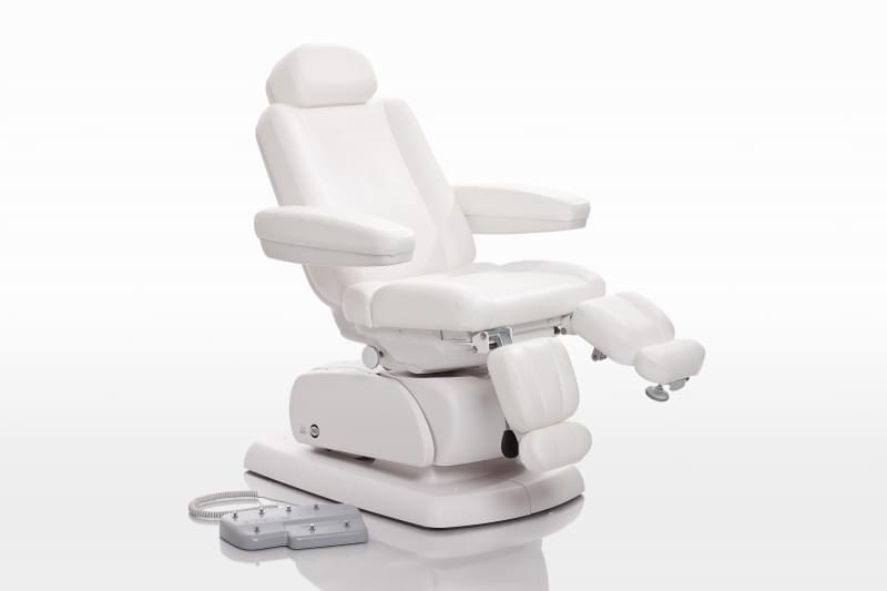 Возможность установки кресла-кушетки в горизонтальное положение и подлокотники с двойной обивкой позволяют проводить комфортные процедуры массажа и рефлексотерапии